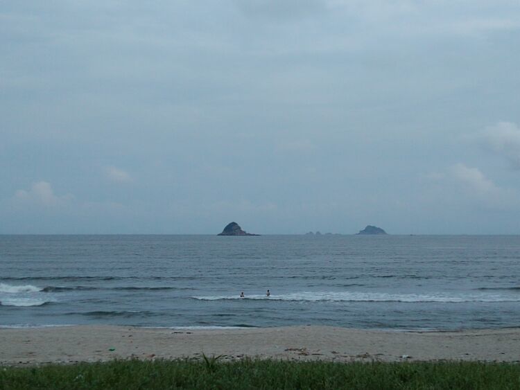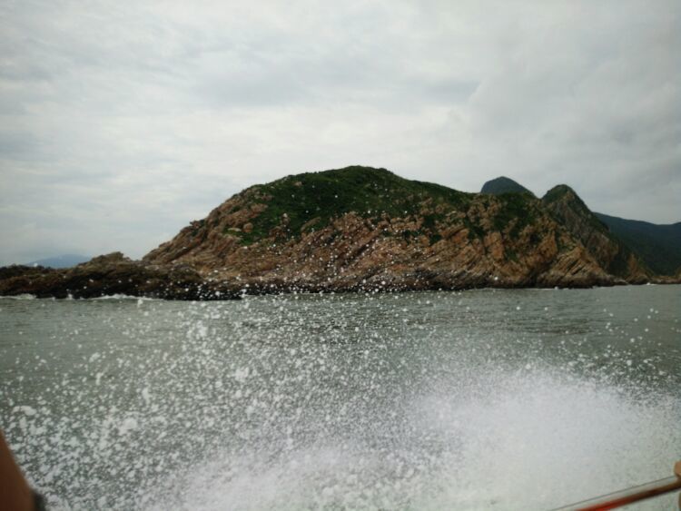 大飞浪中漂,不敢拍照,看见鱼群跟船儿赛跑,可惜见不到白豚,中途睇吾岛(到)、见吾岛(到)、想吾岛(到)都刷身过,终于上得岛(到)