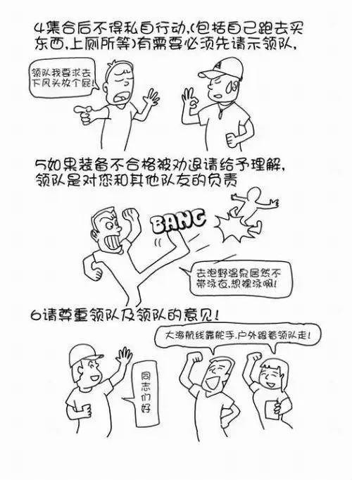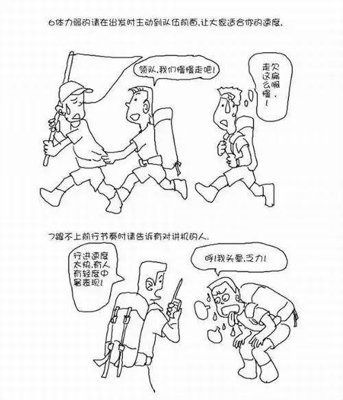 7.体力弱的请在出发时主动到队伍前面来;让队伍提前调整全队速度