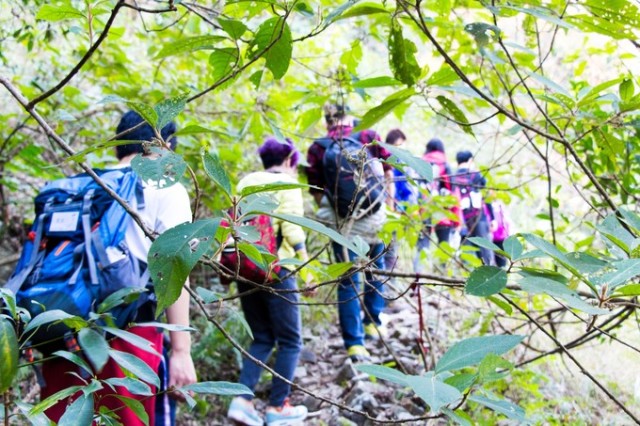 14:00 开始下山,坡陡路滑,请小心慢行(需要男女协助,发挥户外团体精神)