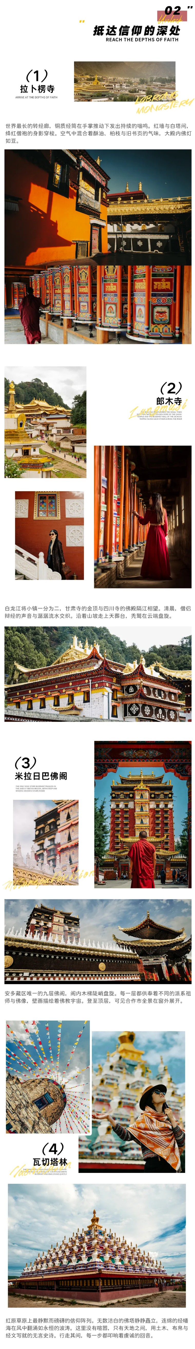 4、门票:拉卜楞寺、达仓郎木赛赤寺、扎尕那、花湖门票+环保车、黄河九曲第一湾、瓦切塔林、莲宝叶则+景交车、米拉日巴佛阁;