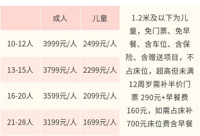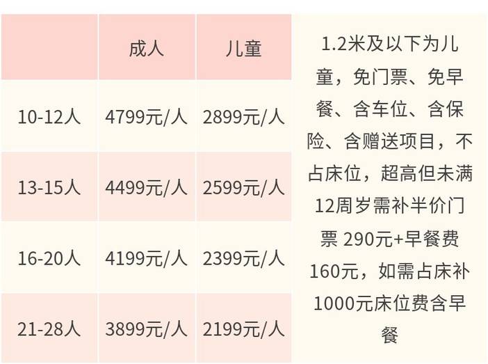 成人3899元/人,儿童2199元/人