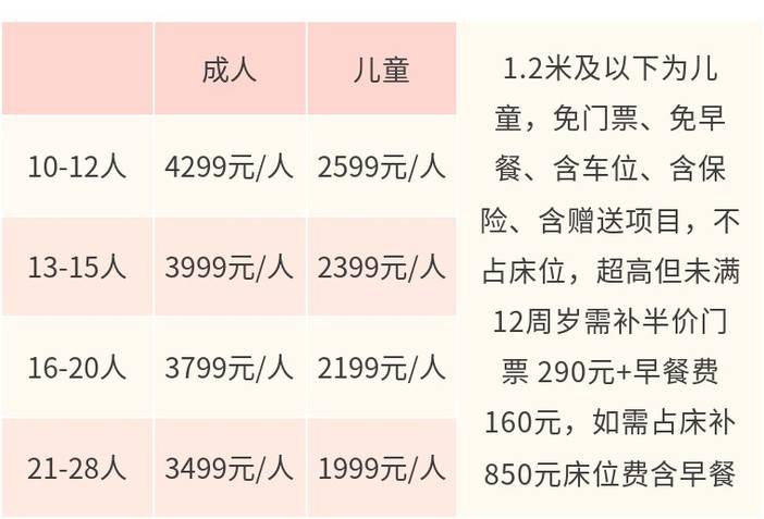 成人4199元/人,儿童2399元/人