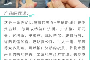 13:30 左右到达【潮州古城】。美食吃不停,快去享受这些美味吧!肠粉、牛杂粿条、蚝烙、咸水果、粿汁、春饼、草粿、灌粿条面、糕烧番薯芋、甘草水果、凤凰浮豆干、溪口卤鹅、肉脯等等