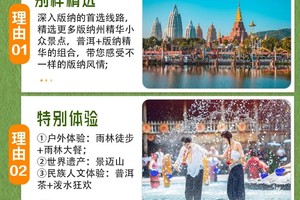 【特别体验】:1)户外体验:特别安排体验热带雨林轻徒步+尊享户外雨林大餐,零距离感受热带雨林的独特魅力;2)世界遗产:深入世界非物质文化遗产腹地-景迈山,了解和体验不同人文和风景;3)民族人文体验:体验民族普洱茶文化和傣族同胞泼水狂欢;
