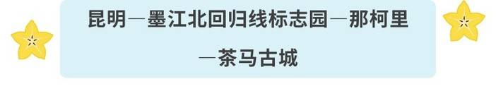 车程:昆明—北回归线标志园,车程250KM ,约3小时;北回归线标志园—那柯里—普洱,车程160KM,约2.5小时;