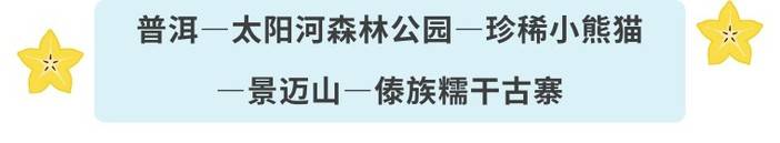 【小众网红】:1)探秘国家级普洱太阳河森林公园,与小熊猫和犀牛等多种可爱珍稀动物来一次亲密互动;2)探秘景迈山芒景参天神树公主榕和蜂王树,和千年古树来一次私密对话;3)前往版纳小众网红点般若寺+傣乡水城,定格一张您的精彩照片~