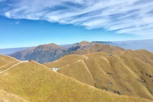 10:30-12:30 这个时间段沿着山脊行走,沿路漫山的金色草甸,十分迷人,会让你有一种置身梦幻的感觉。