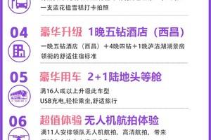 【超值赠送】:所有团期人数达到11人派领队带无人机航拍,分享旅途风景图片或视频,体验不一样的旅行!