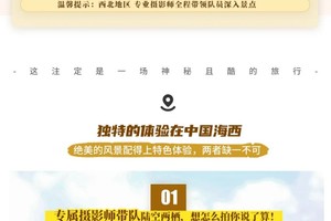 【领队】团队人数10人以下(含10人)时司机兼领队(司机带无人机航拍);10人以上时安排优秀摄影师兼领队全程为您服务;