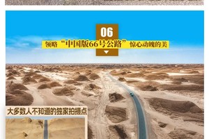 早餐后出发,我们将驱车前往行程中非常重要的一站,世界上唯一的水上雅丹地貌群,沿途经过神奇的波浪公路,这里也被我们称之为【中国66号公路】,自从我们将这段公路设计到线路中,引起了全国户外爱好者的浓厚兴趣。