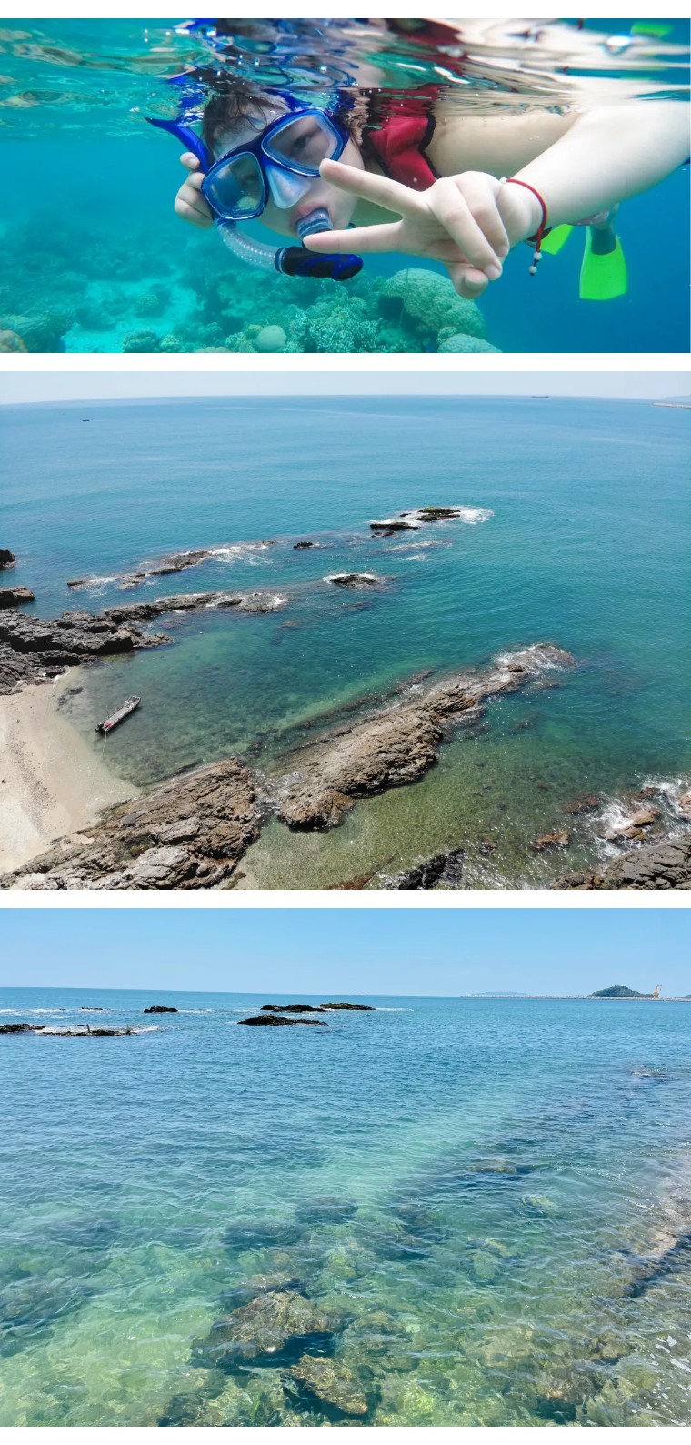 注意:以上80%照片为往期实拍,海水的清晰度、水位的高低,浪大浪小都是不可控的,都会受天气影响,潮汐影响,风浪影响,为此不保证每期有同样的风景,不接受此原因的投诉