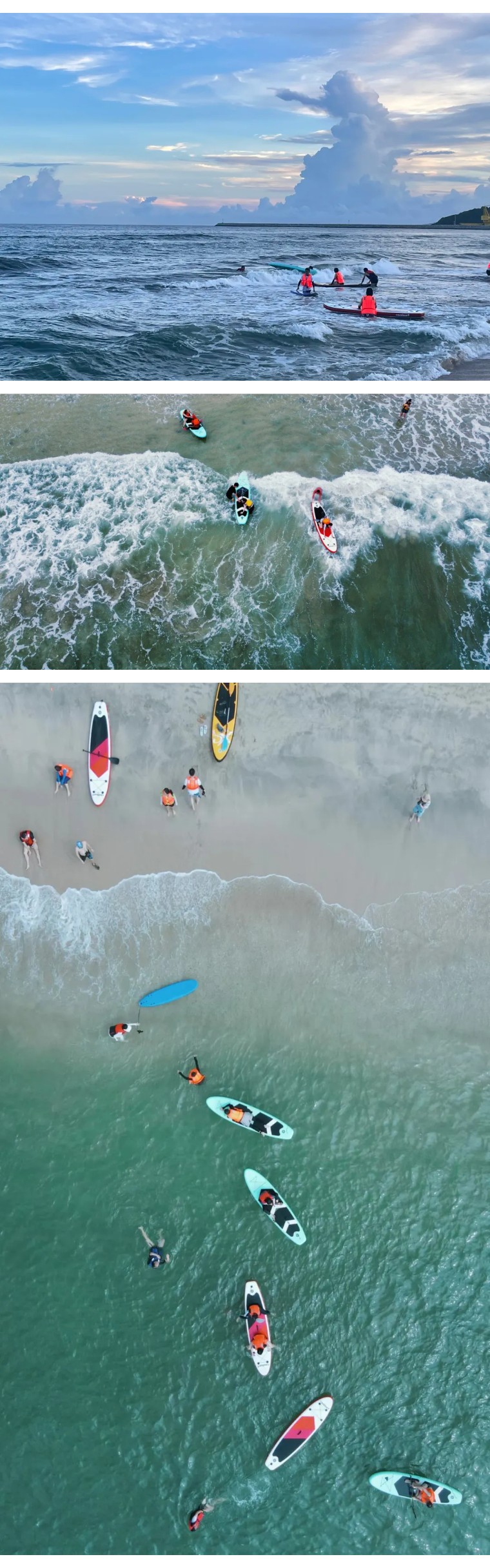 相对比湖上浆板,海上冲浪的难度就更加高了,因为国内很少人玩过海上冲浪,所以更多人心生向往。