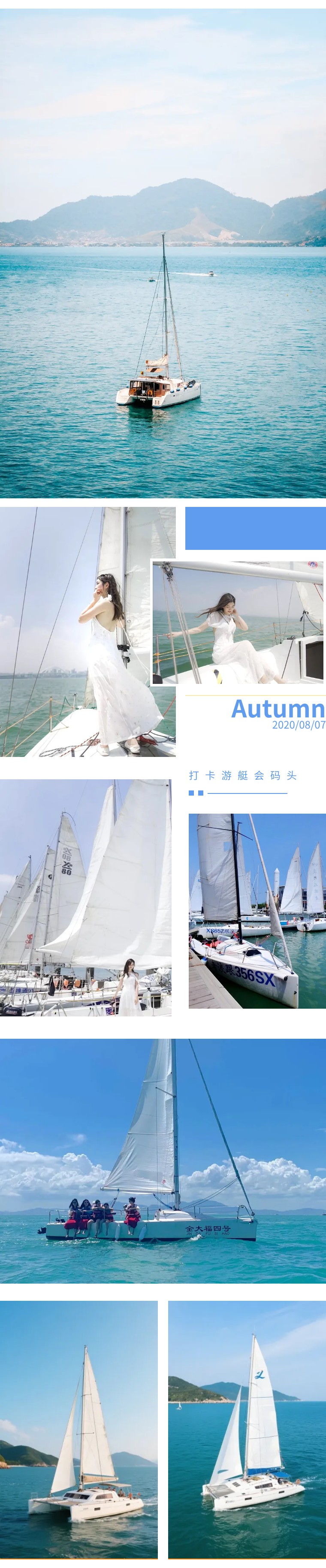 13:30 抵达【帆船基地】,体验尊贵的海上帆船活动,各种疯狂晒照,刷爆你的朋友圈。