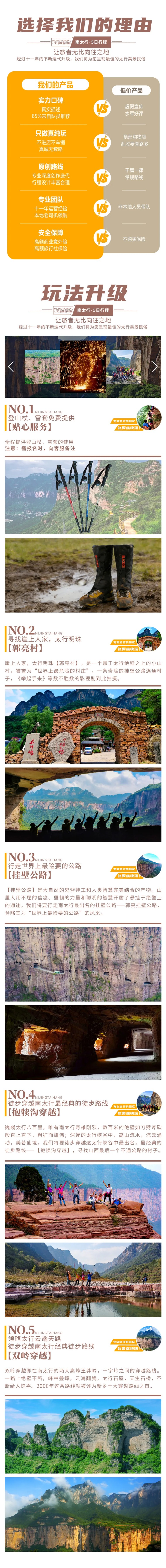 早餐后,出发前往【万仙山景区】。我们将徒步行走这世界第九大奇迹——【郭亮挂壁公路】,亲身感受十三位壮士锲而不舍的精神。站在【崖上人家】观景台上,200余米高的赤红色太行绝壁在你的面前,在你的心里横冲直撞。挂壁公路横挂其上,如梦如幻。来到【炮楼】,远处轿顶山如天宫一般,镶嵌在数百米的绝壁之上,何其壮观。在【天梯】,我们还能看到老一辈郭亮人对外沟通的唯一道路挂在崖壁之上。