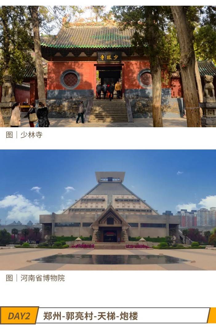 全国各地的小伙伴们到达郑州集合。到的早的亲们可以到【河南省博物院】去看看人类文明的起源发展,也可以到【黄河风景名胜区】去,感受母亲河的大河文化,还可以到【少林寺】去,学习一招半式的少林功夫……一定记要品尝河南特色美食哦,河南烩面、道口烧鸡、胡辣汤……