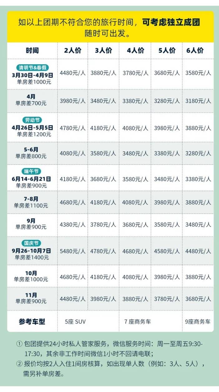 【成团说明】2人成行,8人封团,全程司机兼向导;