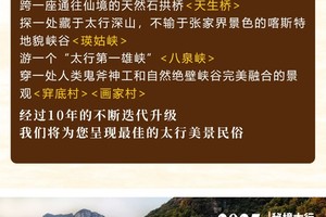 1、不徒步的伙伴,可以休闲游玩天界山,九连山等景区,全方位感受太行的峡谷景观和历史人文,详询客服。