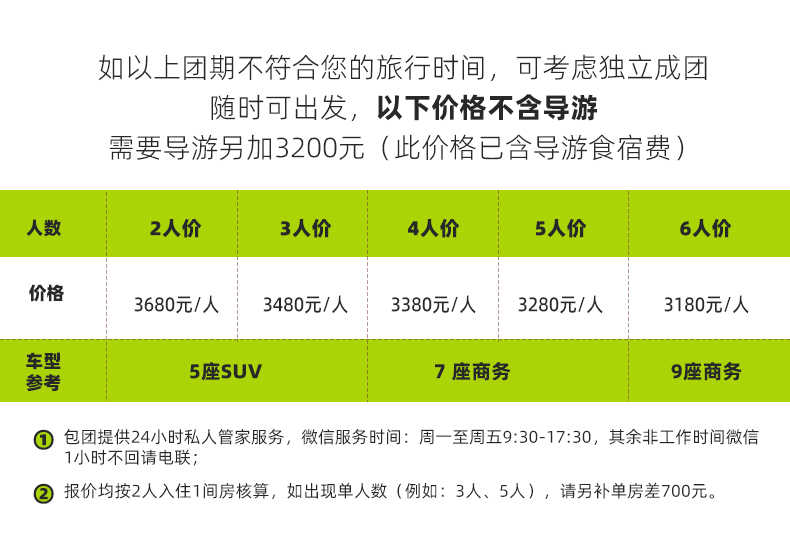 【成团说明】2人成行,10人封队,全程司机兼向导;