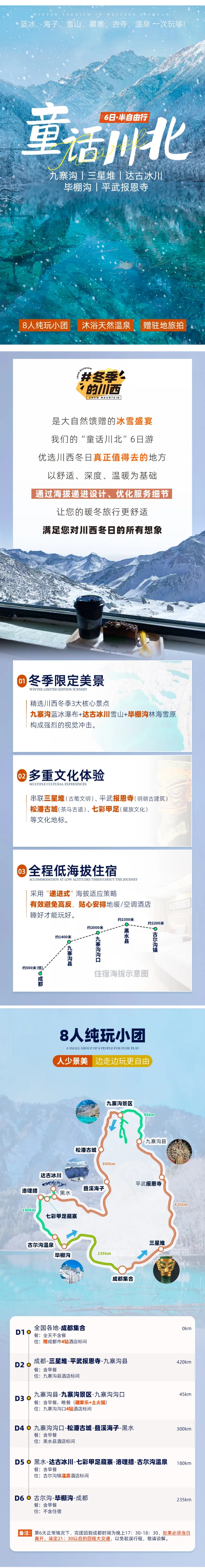 特色介绍:九寨沟冰雪童话、灵韵冬色、蓝冰诱惑