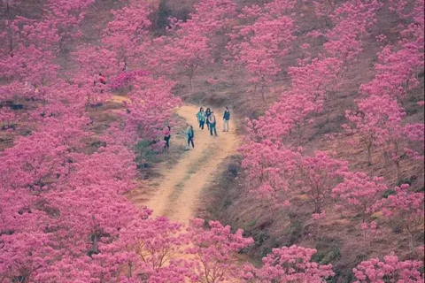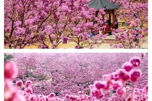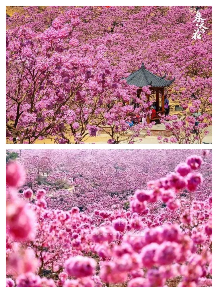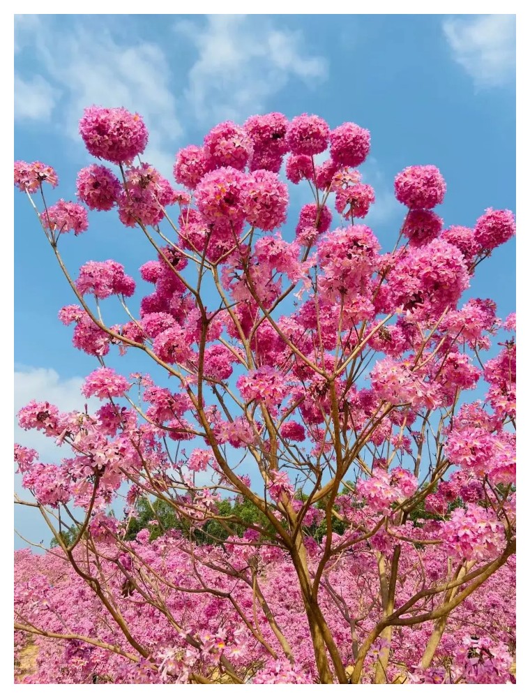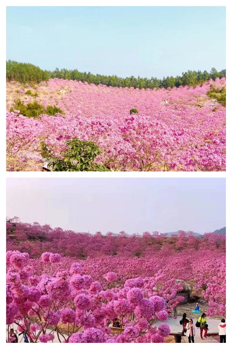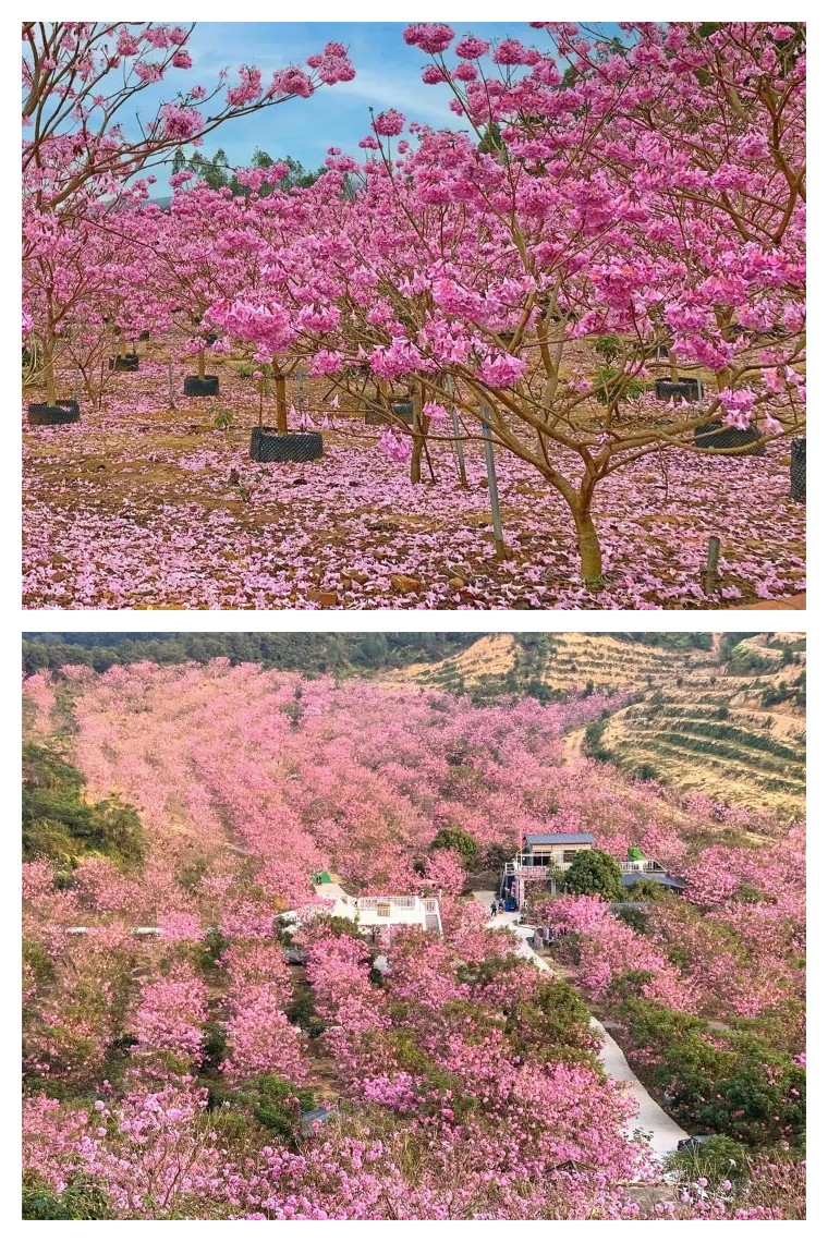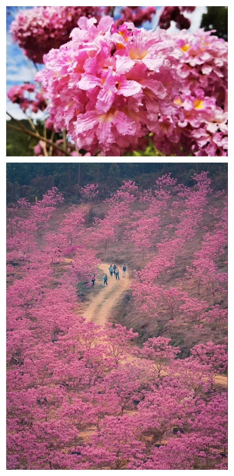 14:30到达占地千余亩的紫花风铃木林场,每逢冬季,这里的风铃花争相怒放,形成一片姹紫嫣红的海洋;