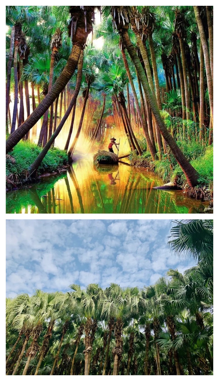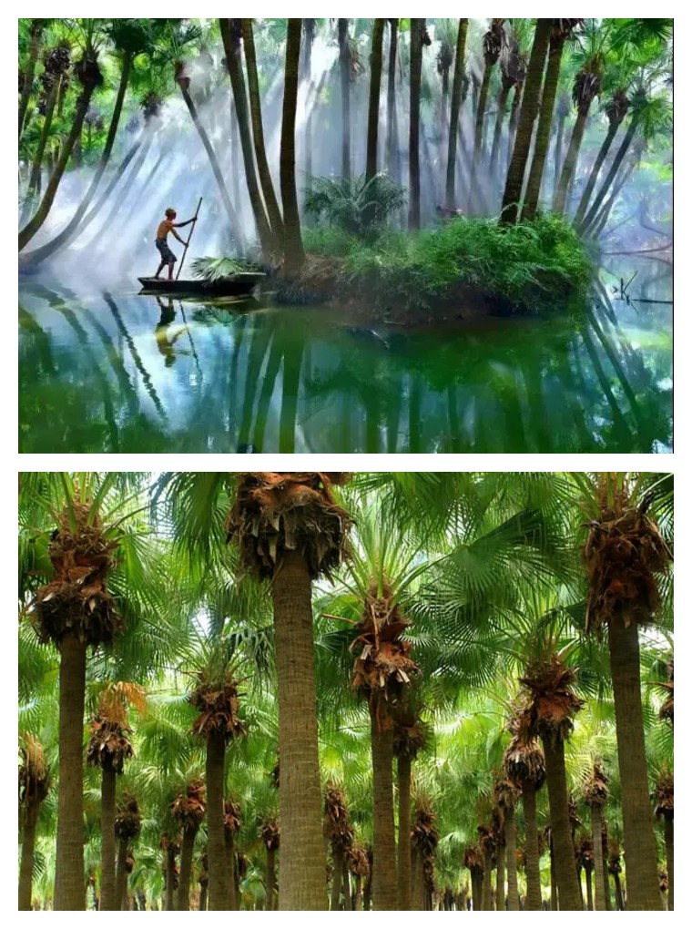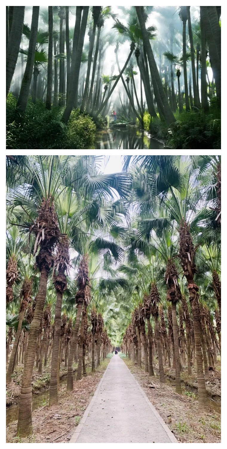 09:40 到达蒲葵林,拍摄中国最大的【新会千亩蒲葵林】,阳光照射错落密布葵树形成了光与影的世界,蒲葵园中不定期会有人工烟雾,就像误入了仙境一般