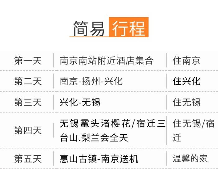 注:樱花和梨兰花会花期非常短,最佳观赏期一个星期,为了保证所有的朋友能看到最佳的花期,第四天行程,第一期看樱花,第二期看梨兰花会,梨兰花会二选一