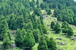 成片郁绿的针叶林,铺满山脊,重峦叠嶂的感觉,