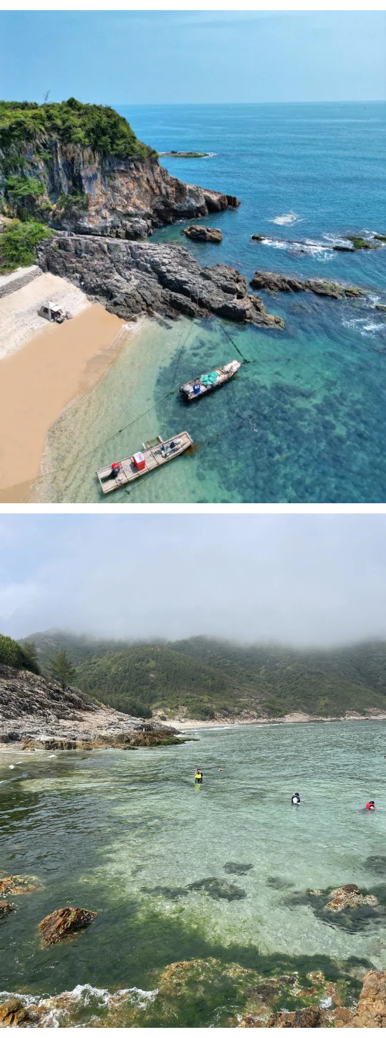 10:00 听从领队安排体验【赶海】【浮潜】、【海上冲浪】或【浆板】,2-3人一组分批有轮着玩。