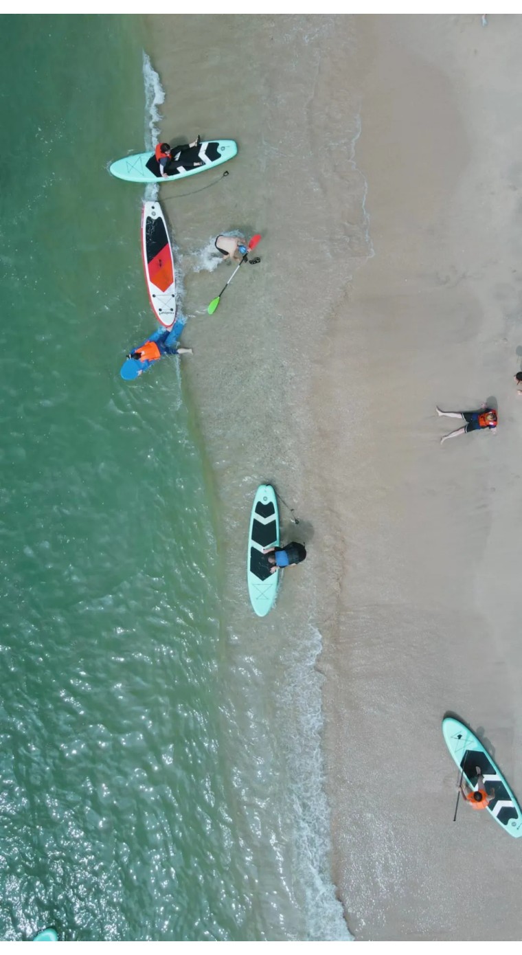 第二天:酒店—神秘沙滩徒步+冲浪+浮潜+浆板—返程