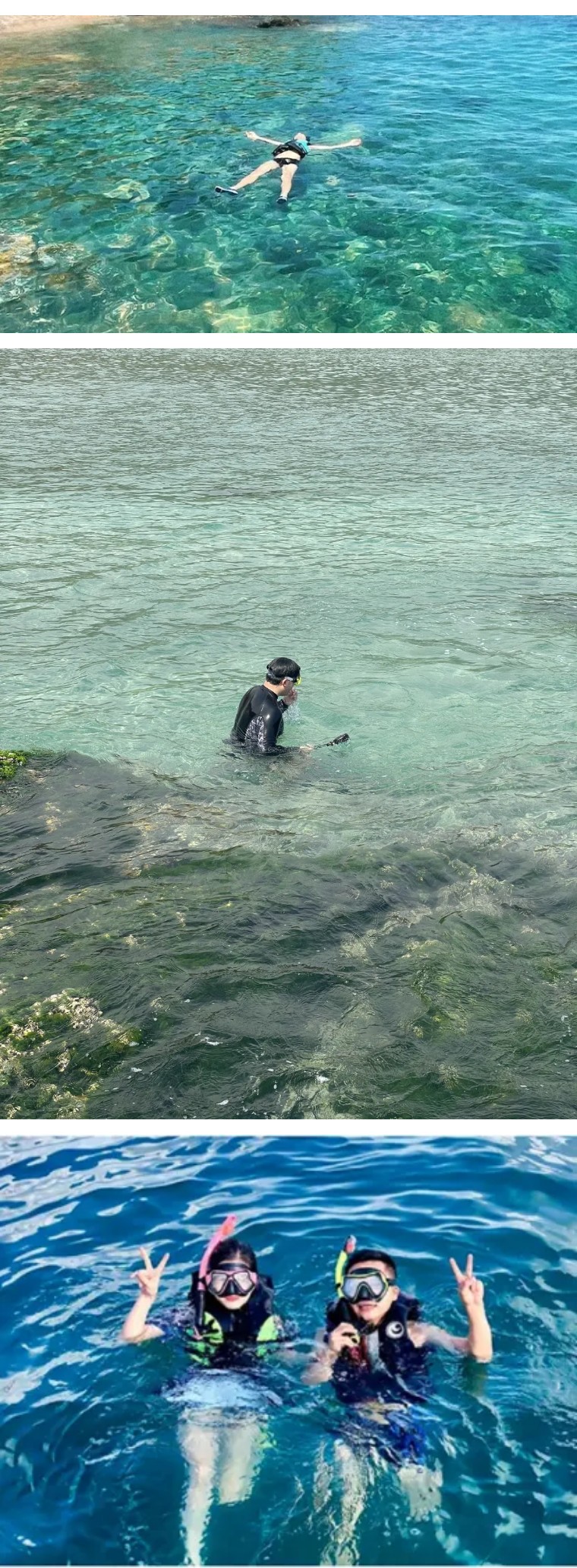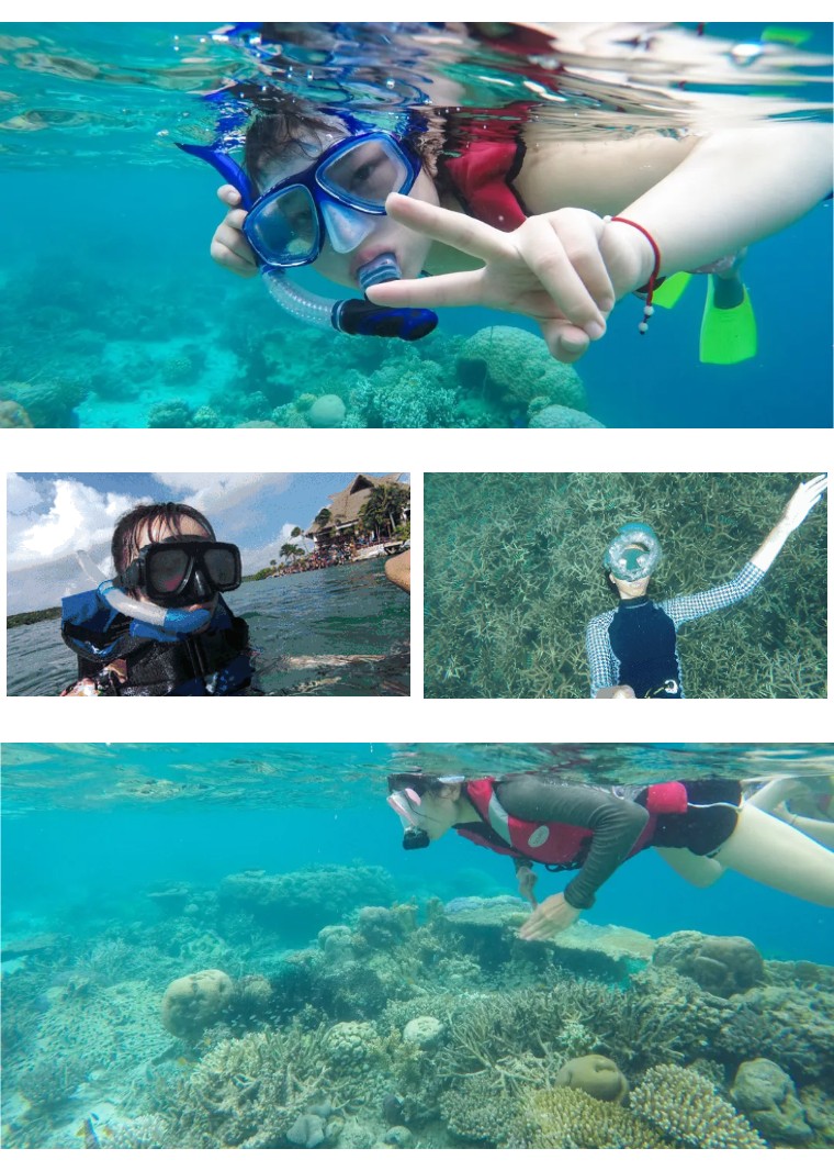 5、浮潜体验60分钟:救生衣+浮潜镜+呼吸管(人数不多不限时间)。