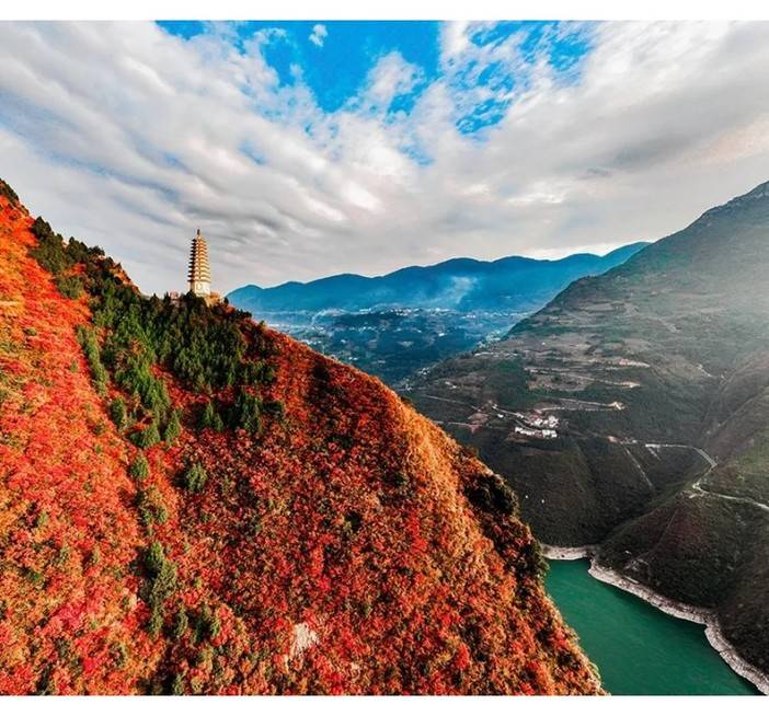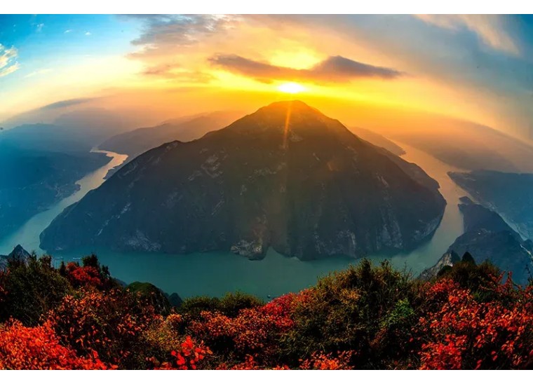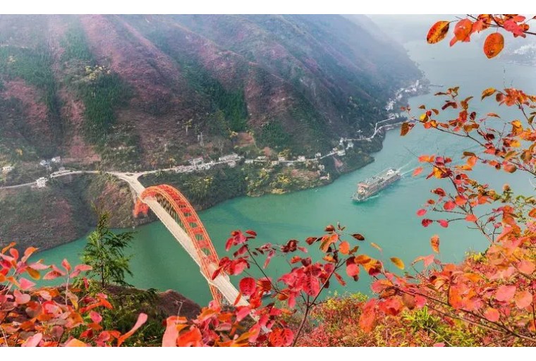 每到初冬时节,巫峡口的文峰观山上,红叶遍山峦,站在文峰观山顶,透过似火的红叶,俯瞰巫峡口彩虹卧波,远眺巫山县城依山层叠,让人顿生江山豪情。