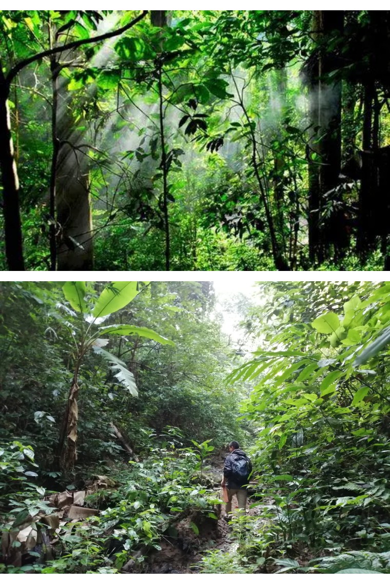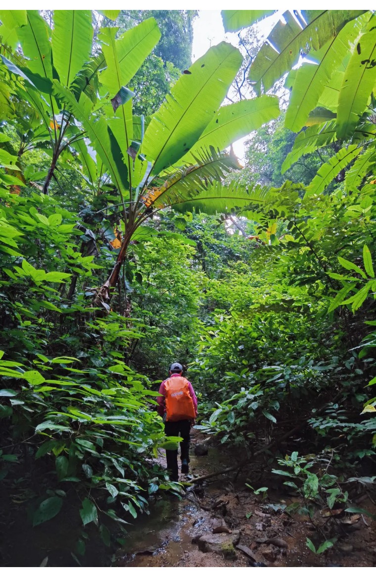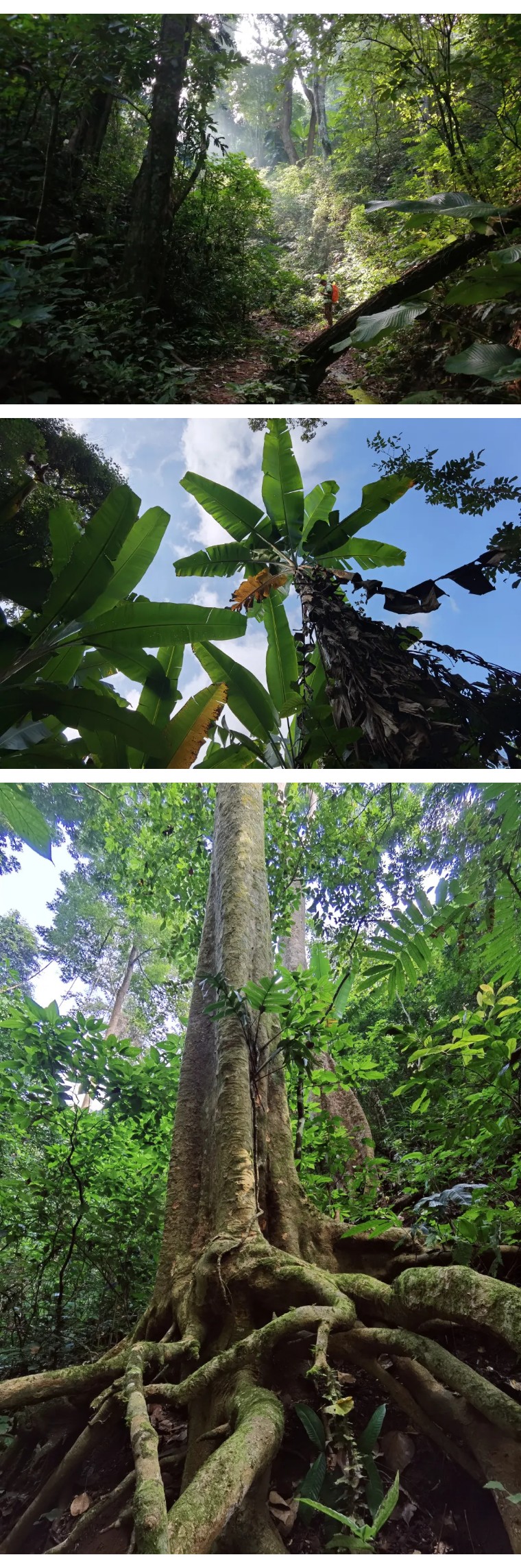 视线被不同层次的绿色铺满,湿润的空气从裸露在外的手臂、脚踝处入侵,不时的鸟鸣让雨林显得更加肃穆,脚下的动作不由得放缓到极限。