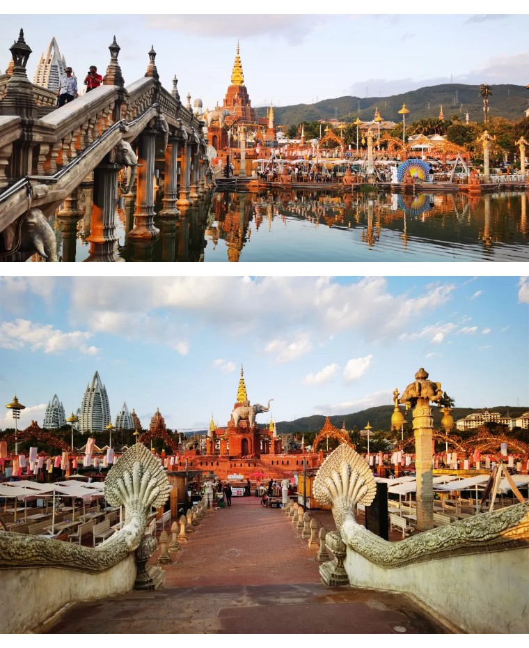 说到西双版纳,大家的固有印象都是它种类繁多的热带水果以及它神奇的热带雨林自然景观,而告庄西双景是西双版纳的另一面,它是新开发的人工景点,仿东南亚风格,紧挨着澜沧江(流到东南亚叫湄公河)。