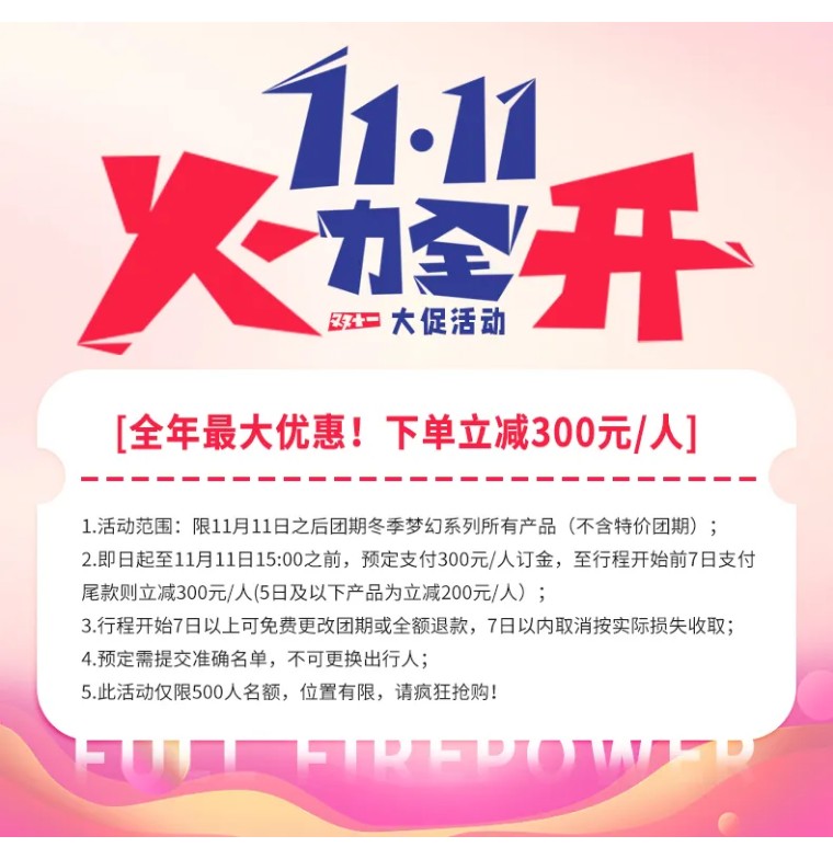 正价团期:11月、12月、1月,2月1日-10日,2月22日-28日,3月