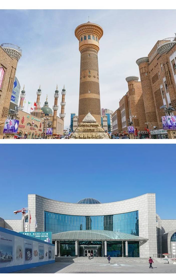 【国际大巴扎】——世界上规模最大的巴扎(巴扎为维吾尔语,意为集市)。具有浓郁的伊斯兰建筑风格,体现了浓郁的西域民族特色和地域文化,这里除了有令人眼花缭乱的商贸市场外,还有美食广场、观光清真寺、80米高的新疆第一观光塔等设施。