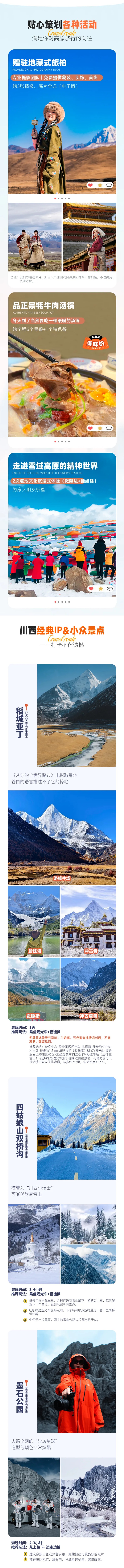 (4)冬季因冰雪天气影响,牛奶海、五色海会视情况封闭,不能游览,敬请见谅;当天游览线路参考:景区游客中心-景区观光车约1小时-扎灌崩-徒步0.5km-冲古寺-徒步1.5km-卓玛拉措(珍珠海)-仙乃日神山-原路返回至冲古服务区-观景车约20分钟-洛绒牛场(三怙主雪山)-有精力的可以继续徒步约2KM至贡嘎措-原路返回出景区。