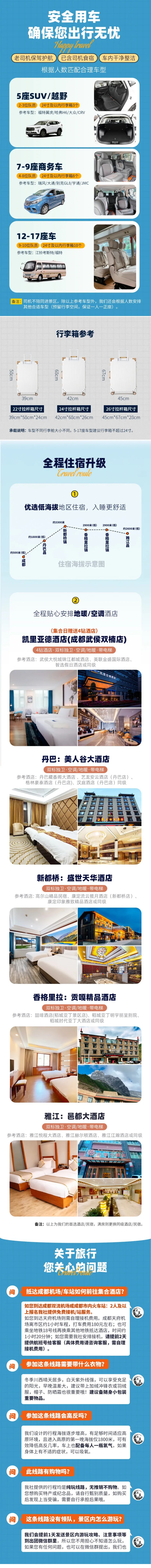 (1)以上行程时间安排可能会因天气、路况等原因做相应调整,正常情况下完团回到成都时间为晚上18:00-19:00,如果必须当日离开,请定22:00以后的回程大交通,以免耽误行程,敬请谅解;