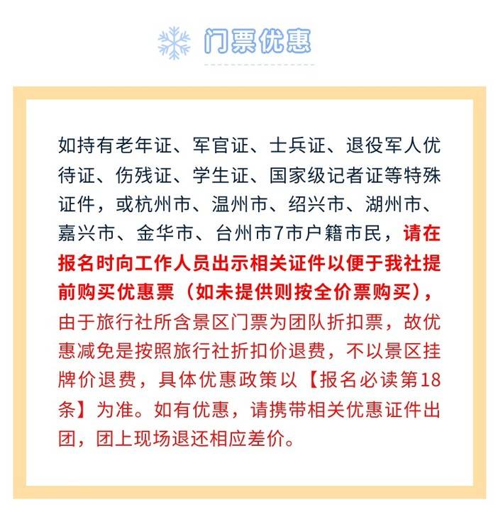 (3)春节及跨春节:出团日期当中如有春节日期的团队,无论何时何地何种方式退团,所有费用不退。