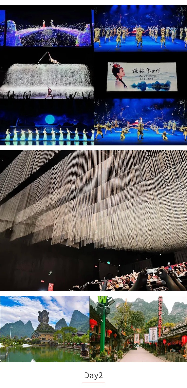 然后约上三五知己,逛西街、看当地有名的大型演出印象刘三姐(自费)或桂林千古情表演(自费)。