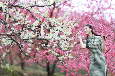 十里长廊的桃红李白蜿蜒于青山绿水之间