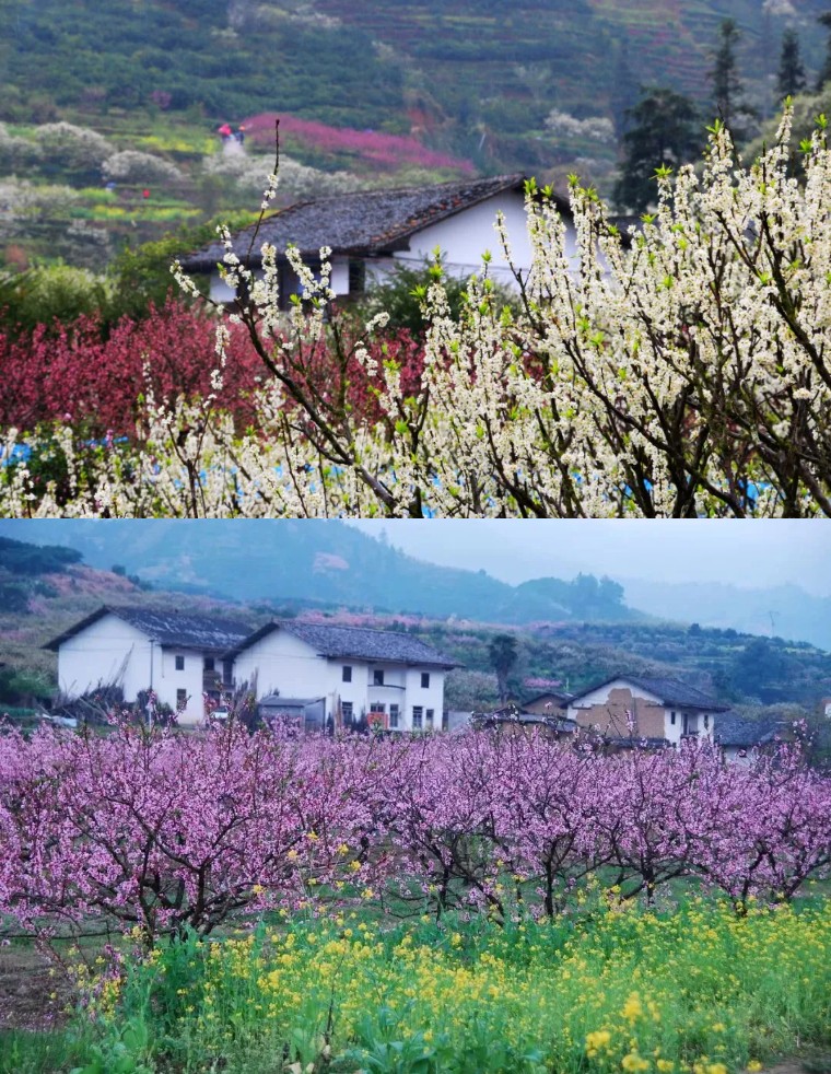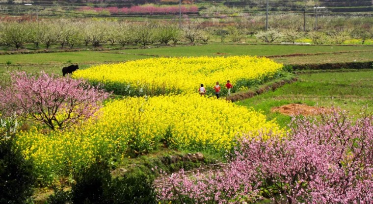 延绵5万多亩的桃花、梨花、油菜花