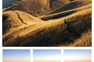 07:40 领队带大家往星空营地出发,今天的风景绝佳;经过空中栈道、观音宕星空营地、绝望坡,一片云上草原,金光闪闪,沿途风景如画;