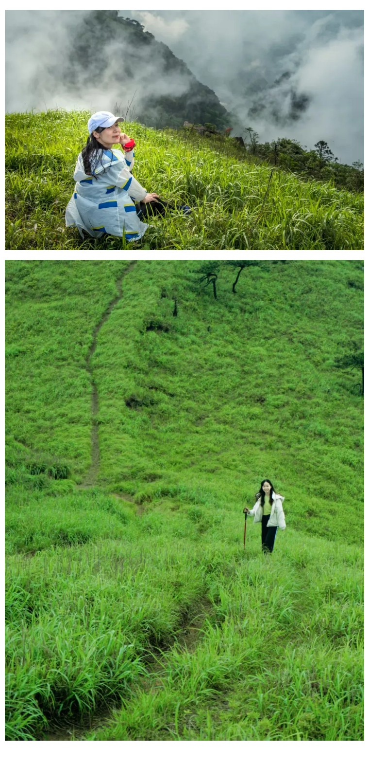 满眼翠绿的高山草甸,云雾飘渺的山巅