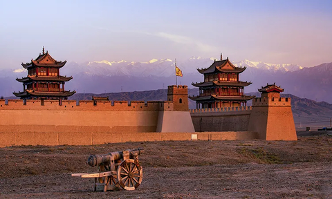 10: 00我们先抵达【嘉峪关关城】,从关外看去,巍峨雄壮的关城及瓮城伫立在夕阳之下,一派庄严。几百年前的大青石,依旧在这里默默地承载着历史的厚重。 嘉峪关外,是延绵的祁连山脉,远处的山顶可见积雪,天空的灿烂云霞将嘉峪关关城衬托地更加壮美。