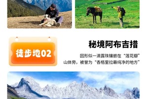 【超值体验】:四大超值体验: 1)四大雪山齐同框:玉龙雪山+哈巴雪山+梅里雪山+白马雪山,一趟旅程,可看四座雪山神韵,让您物超所值,大饱眼福!2)秘境之地尼汝村轻徒步,感受隐世之美;3)徒步全球十大经典路线之一的中虎跳高路精华段,用脚步丈量世界。4)打卡halfway中途客栈网红平台,以及峡谷底“人生石”,留下人生照片,定格最美瞬间。