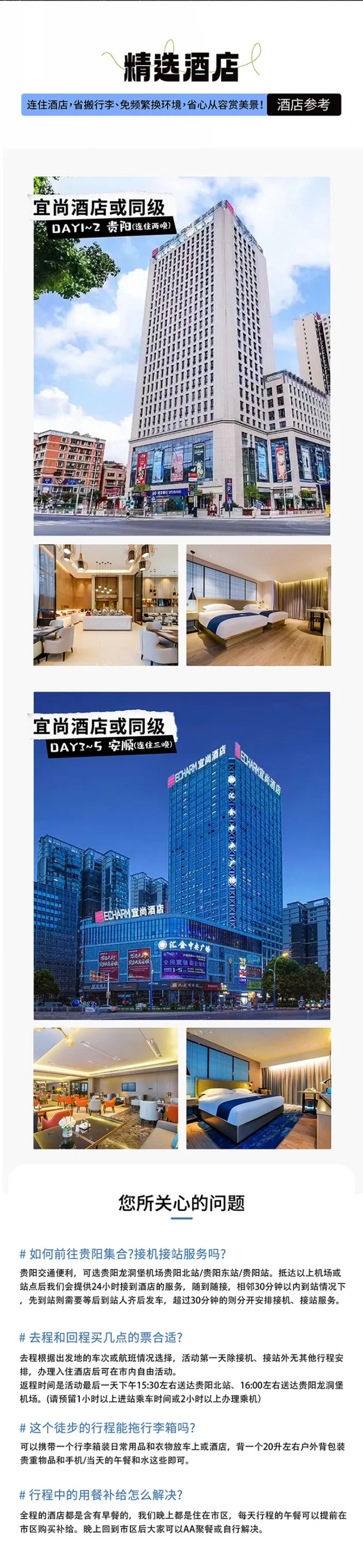➁ 住宿:贵阳2晚连住+安顺3晚酒店连住(2人/间)