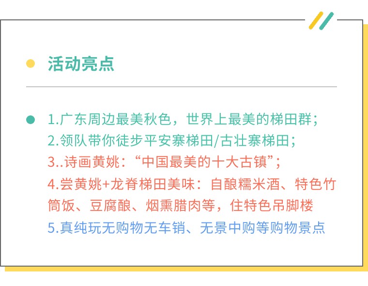 2、龙脊门票:龙脊梯田景区门票80元/人+上下山转车费40元/人(由领队统一预定购买,费用车上领队统一收取)