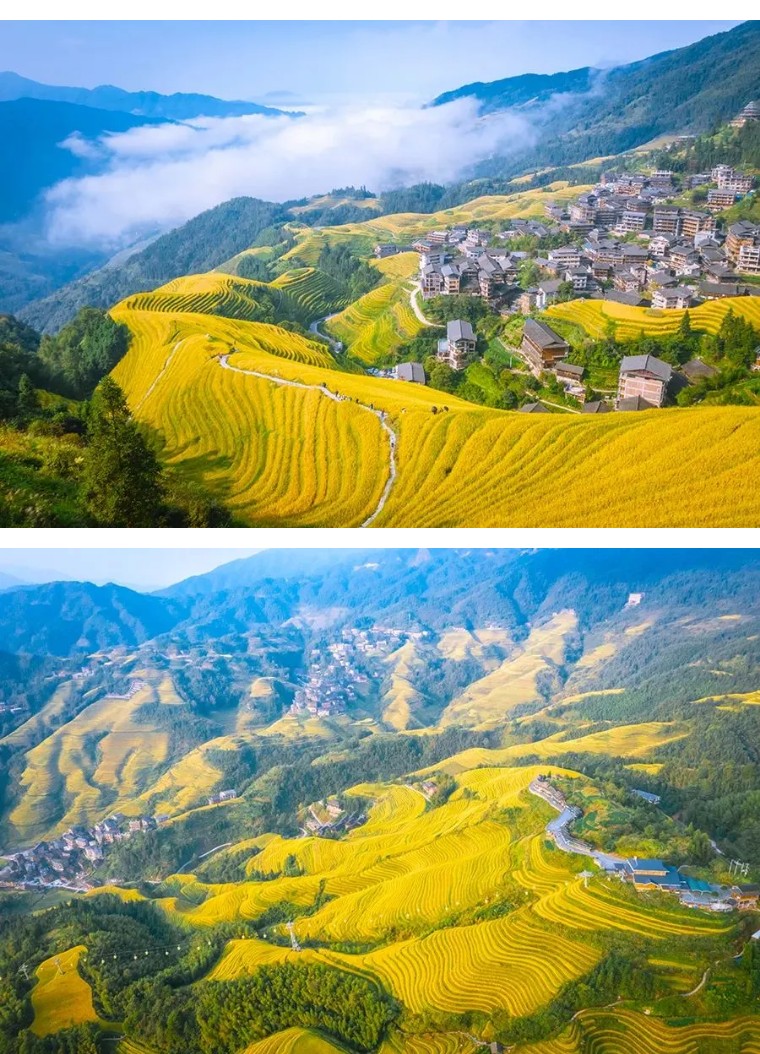 如今这里也仍是龙脊梯田最原始规模最大的村寨,保存非常完整、古老、规模较大的壮族干栏式吊脚木楼建筑群,步行石板路徒步至平安寨大概40分钟,沿途可欣赏非常壮丽的美景!(自由前往)