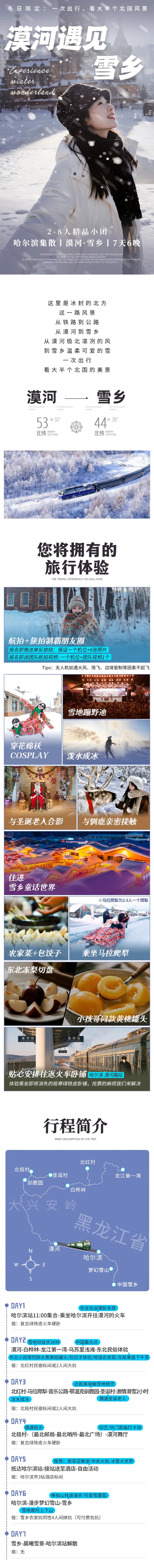 圣诞/跨年/元旦团期:漠河段2晚住宿补300元/人,补1晚哈尔滨住宿300元/人,1晚农家炕如想单住请现询客服;