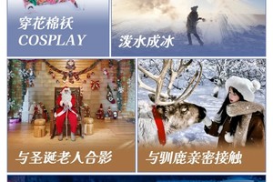4、门票:雪乡门票+往返环保车、梦幻雪山门票、龙江第一湾门票、圣诞村门票、漠河2小时滑雪(包含雪鞋雪板雪杖)、北极村门票、鄂温克驯鹿园;